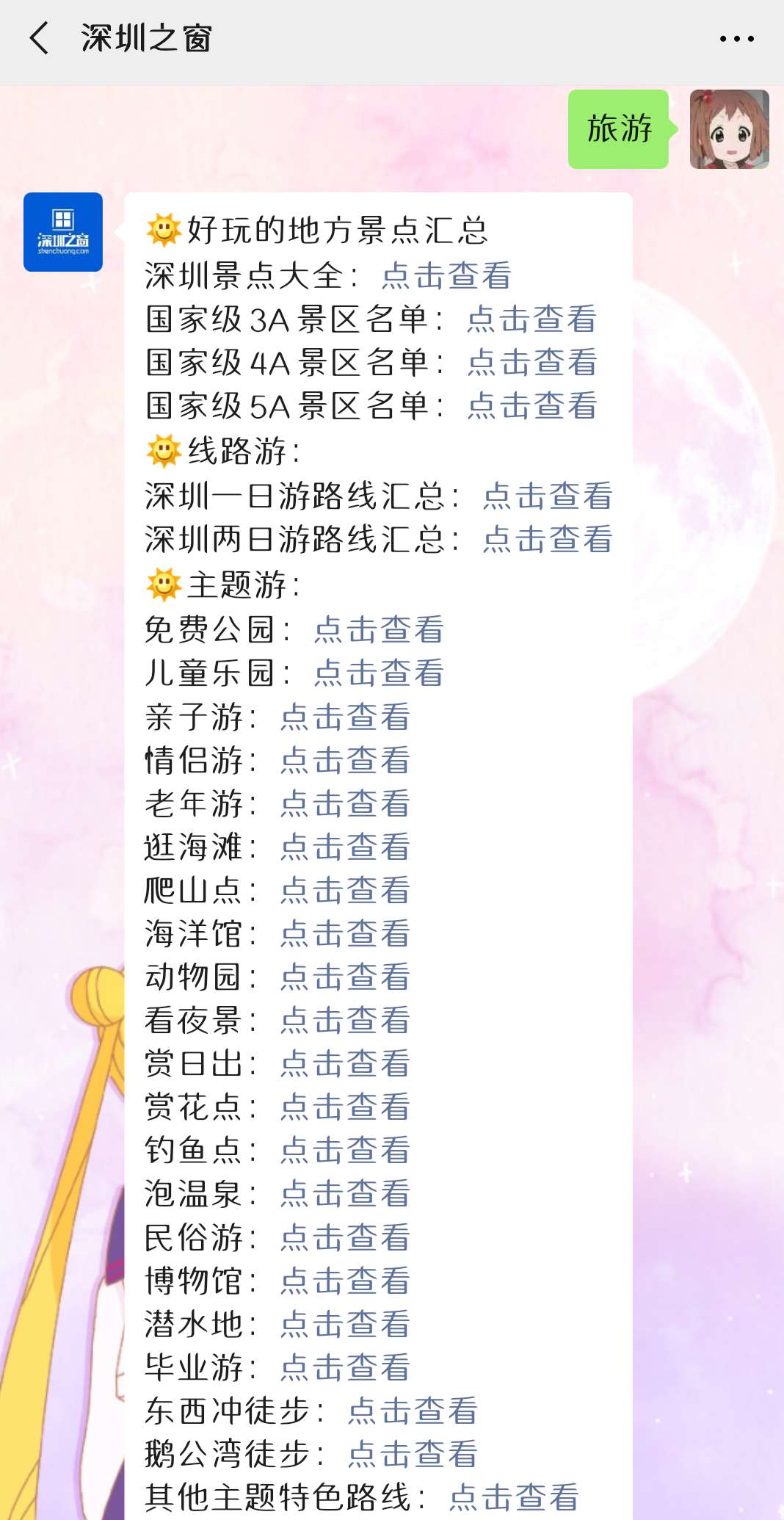 微信搜索关注【深圳之窗】微信公众号,回复关键词【旅游】,获取深圳旅游景点推荐及游玩攻略。