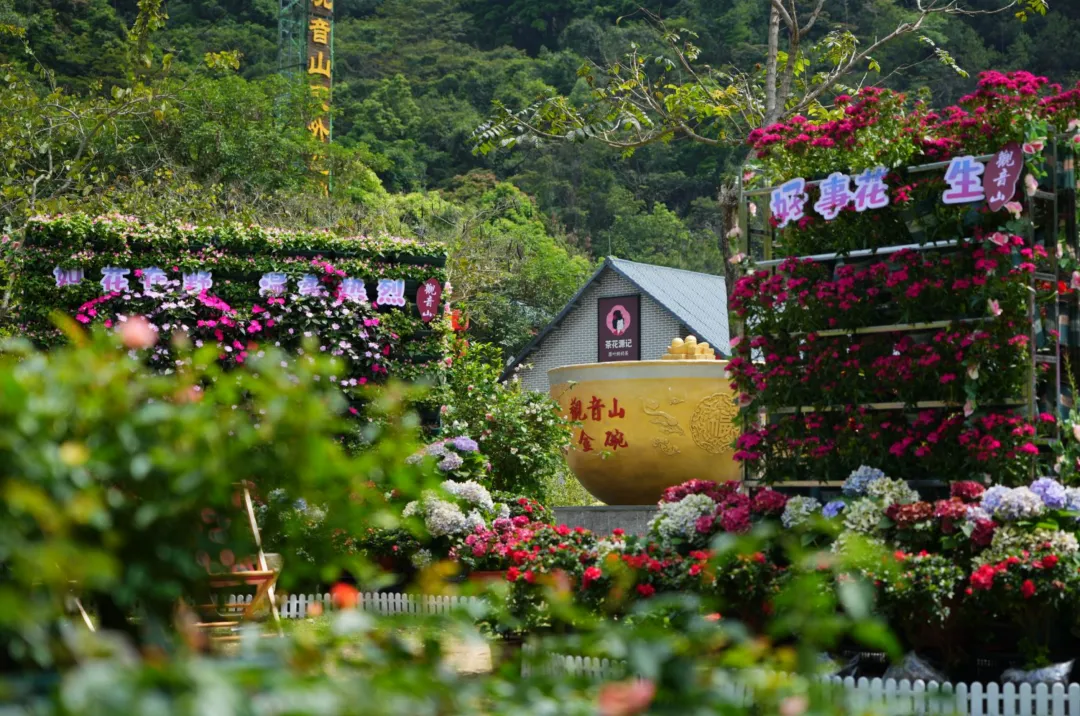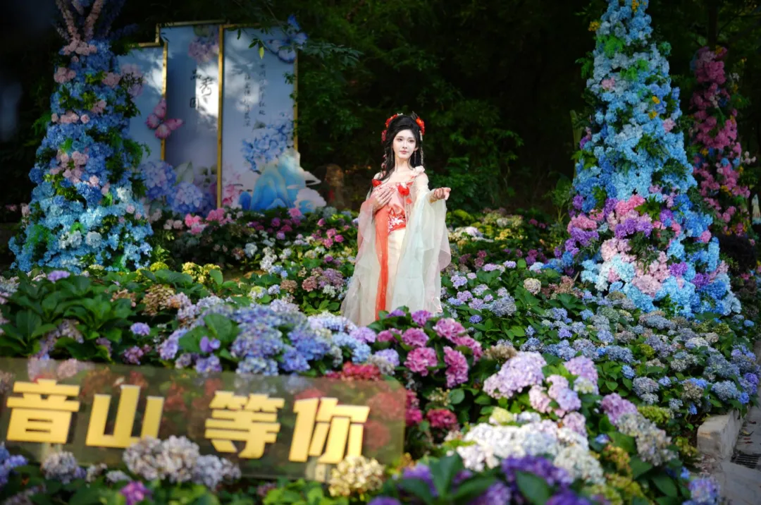 观音山绿意环绕,繁花盛放